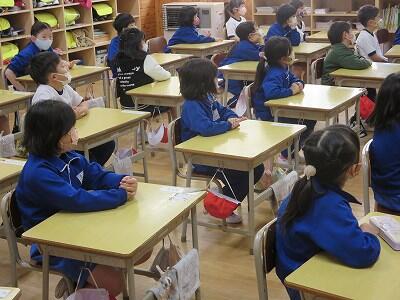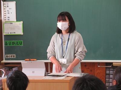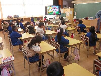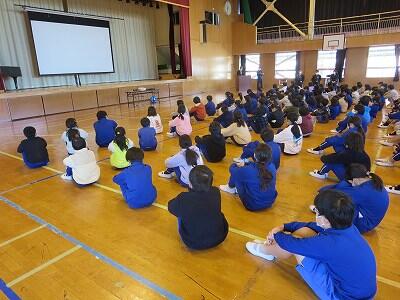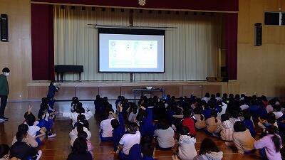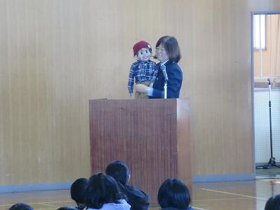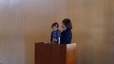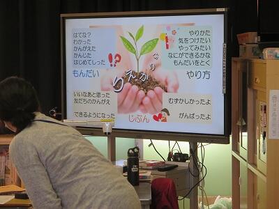 今日は、1年担任からの「ふわふわ言葉」と「チクチク言葉」についての話を聞きました。