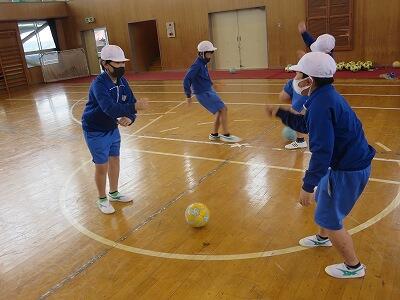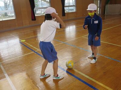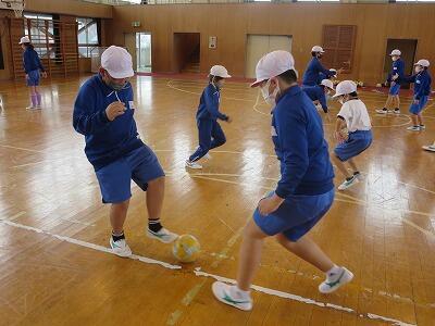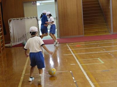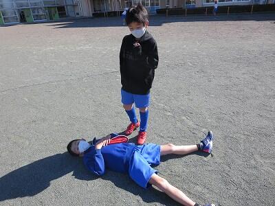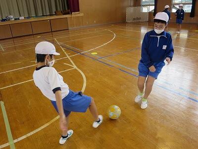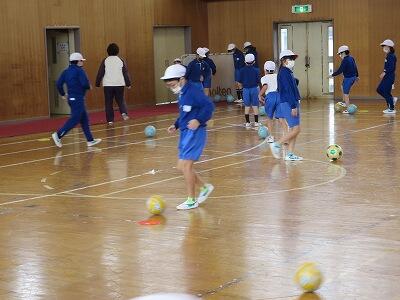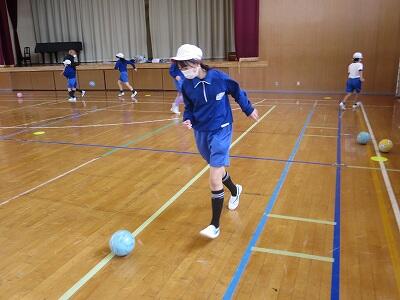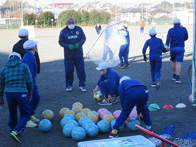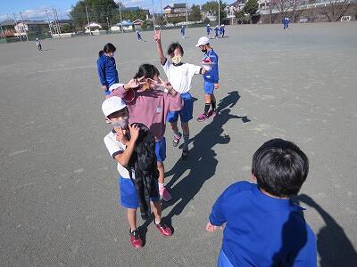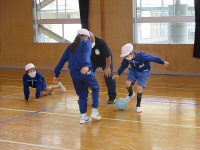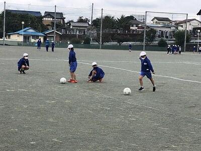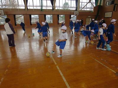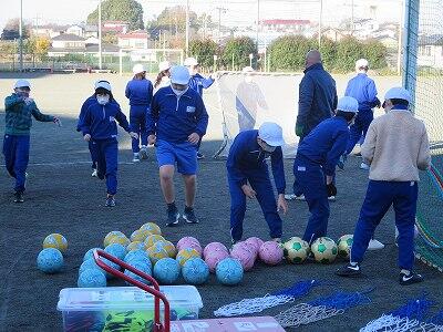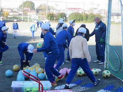 12月1日、サッカー教室の3日目、4年1組の様子です。