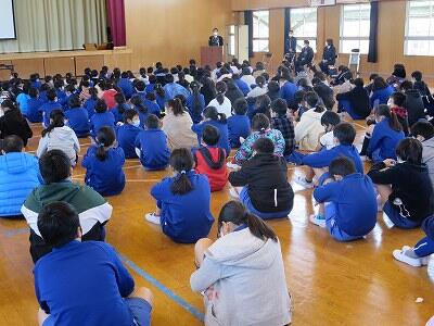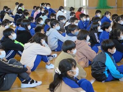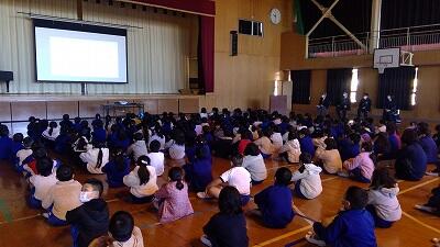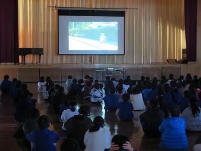 12月2日、上学年と下学年に分かれて、交通安全教室を行いました。