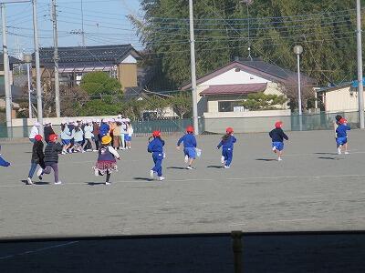 校庭で遊ぶ子どもたちの姿、いいですね。
