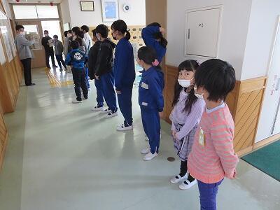 廊下で任命を待つ子どもたちです。