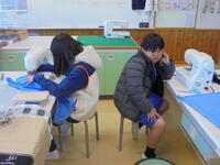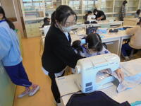 ★5年2組「家庭科」では、ミシンを使って「エプロン作り」に取り組んでいました。