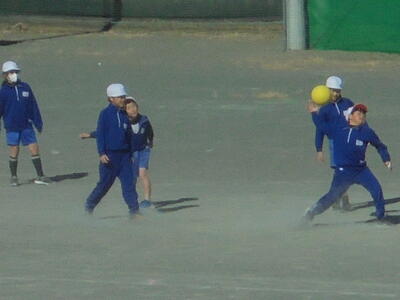 ★時折、冷たい風が吹き抜ける校庭で、6年1組の子供たちが、元気に体育の授業に臨んでいました(#^.^#)。