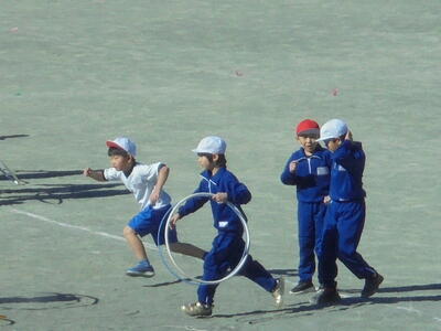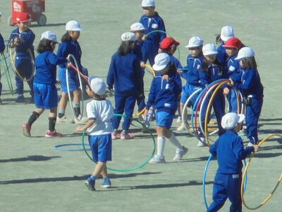 ★子供たちは、笑顔と笑い声と共に、夢中になって「フラフープ運動」に取り組んでいました(#^.^#)。