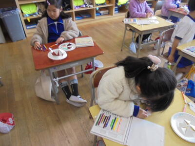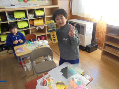 ★1年1組「生活科」では、来年度新入生にプレゼントするための「折り紙作品」作りに取り組んでいました。