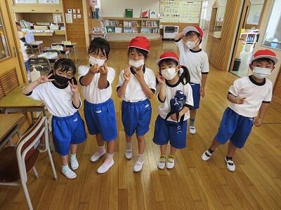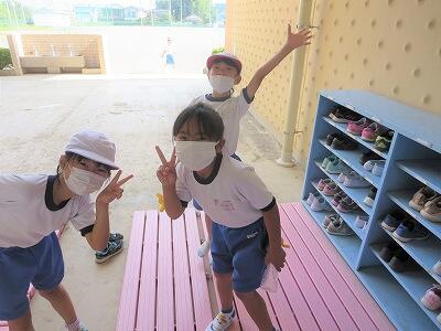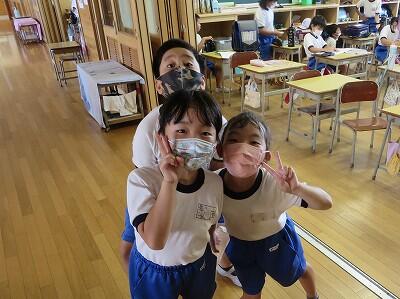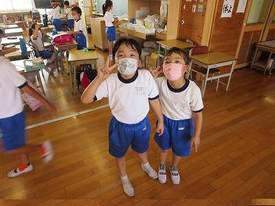朝から、暑かった!汗びっしょり!と子どもたち。
