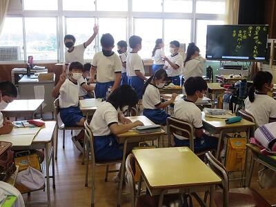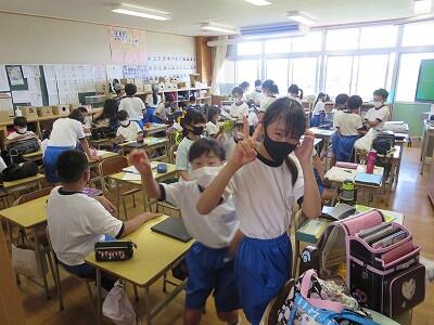 暑さに負けずに、久下田小学校の子どもたちは元気です。