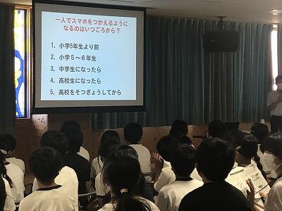 6年生の親子学びあい事業、スマホについて講師の先生をお招きしています。