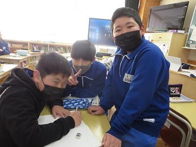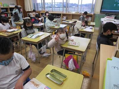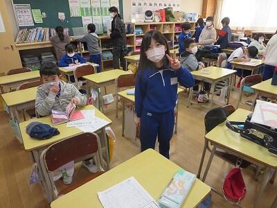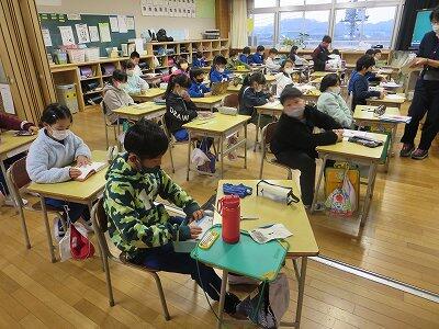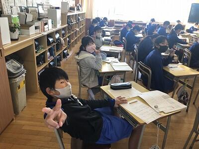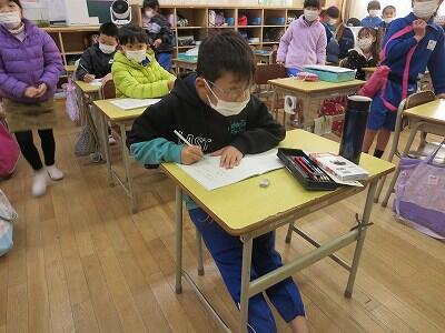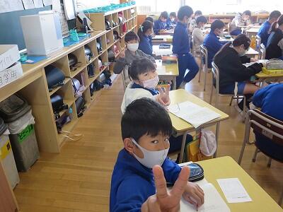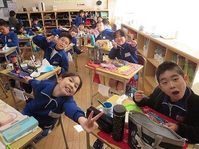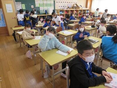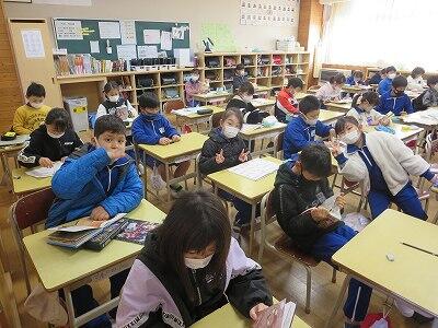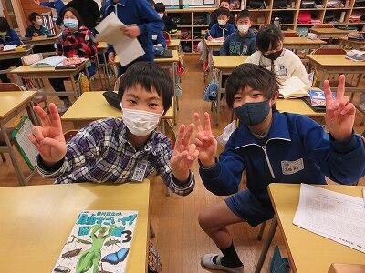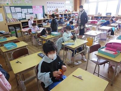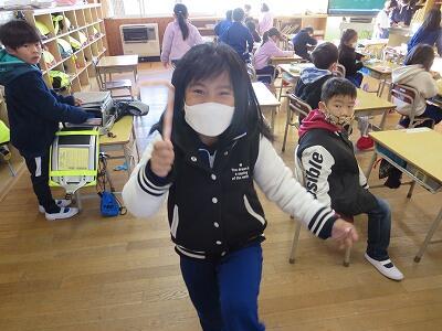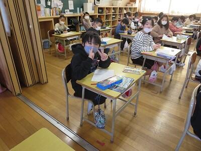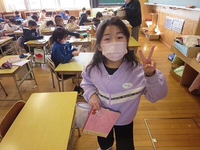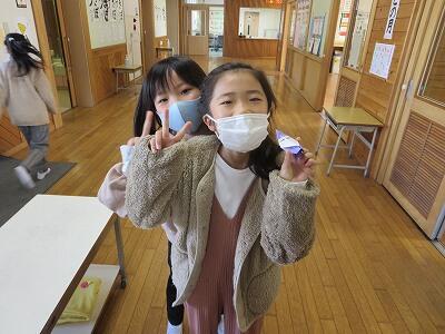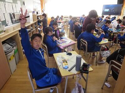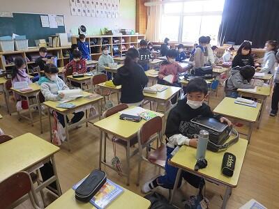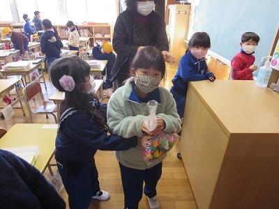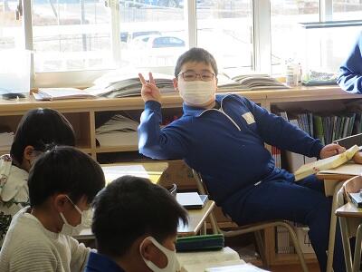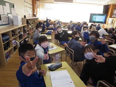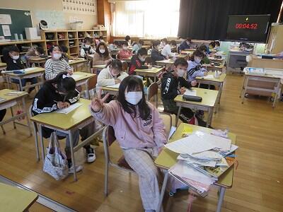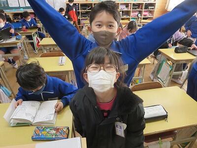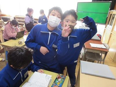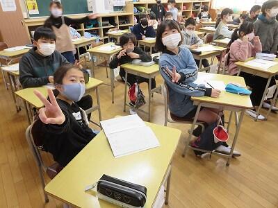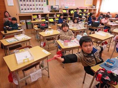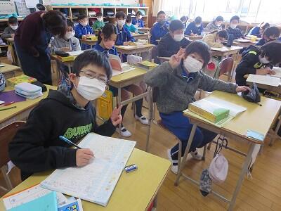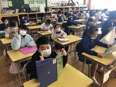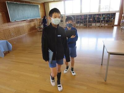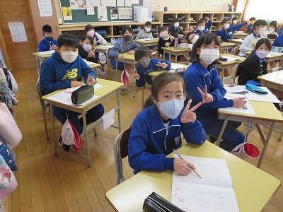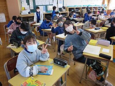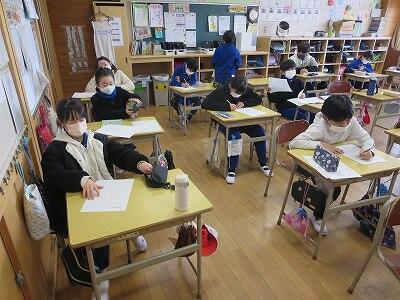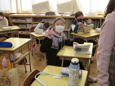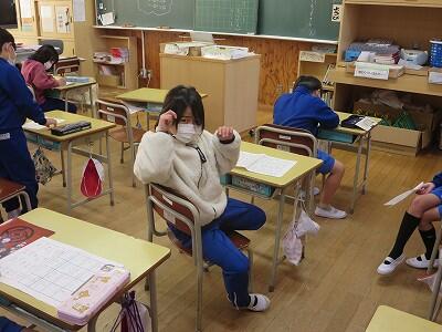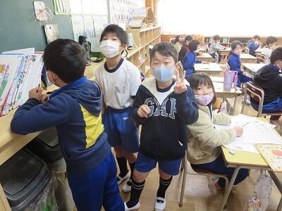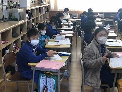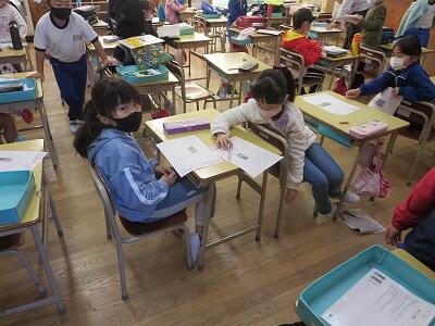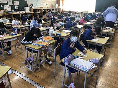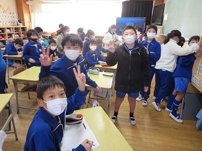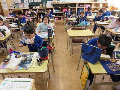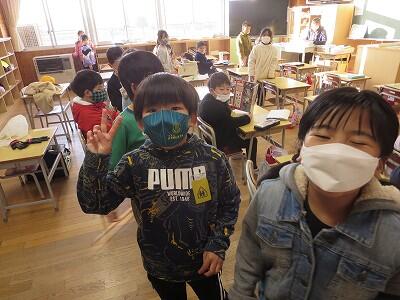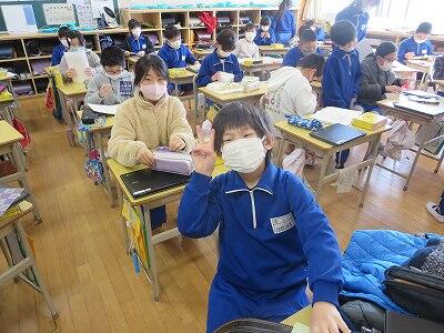 6年の学級委員が、5年の各教室に引き継ぎのあいさつと、ハンドルの贈呈をしてきました。
