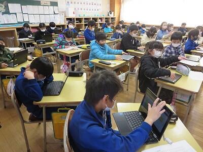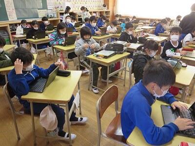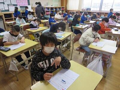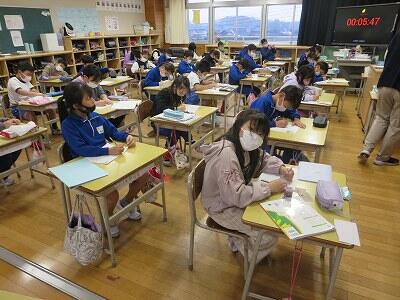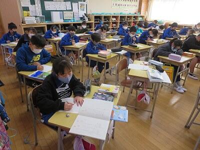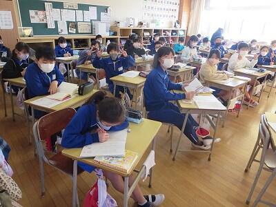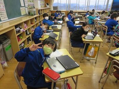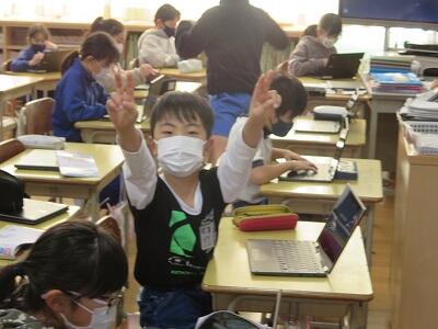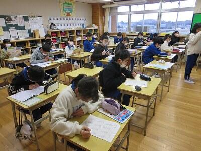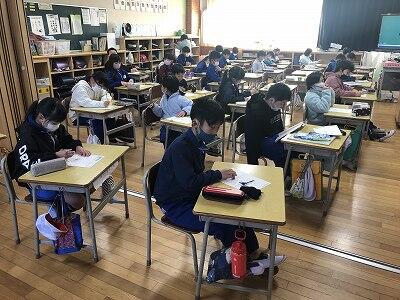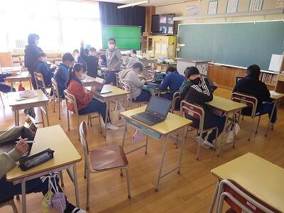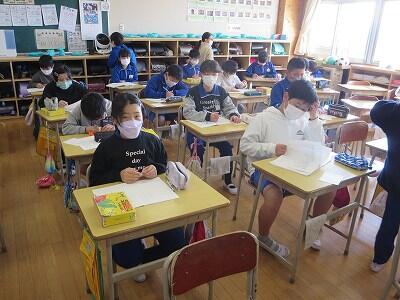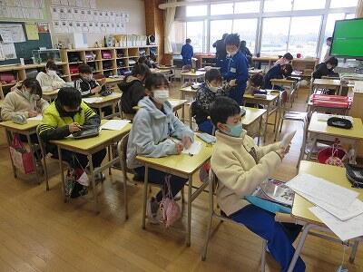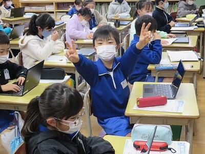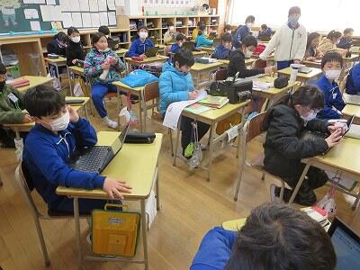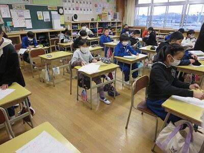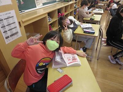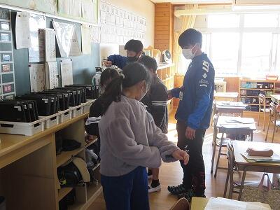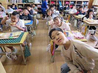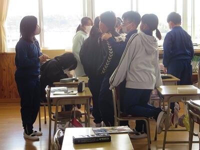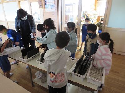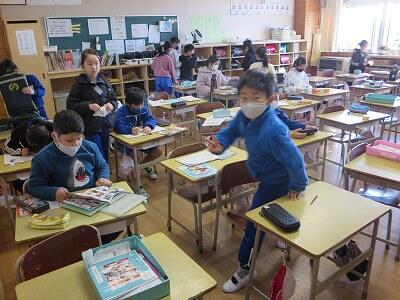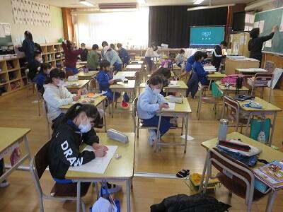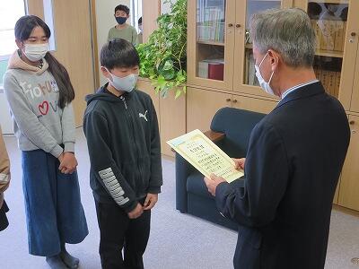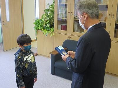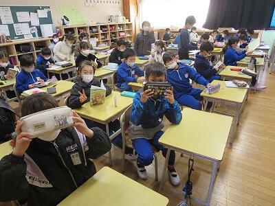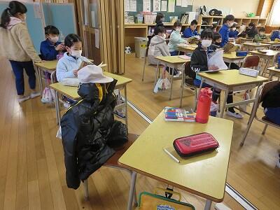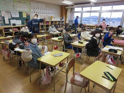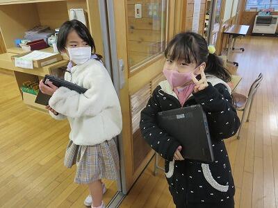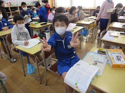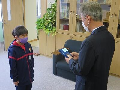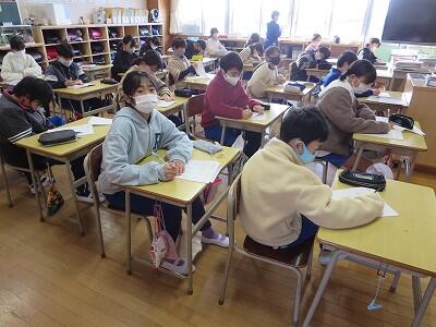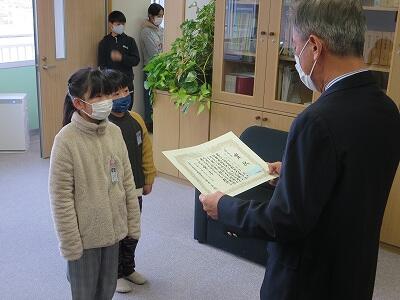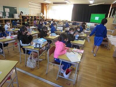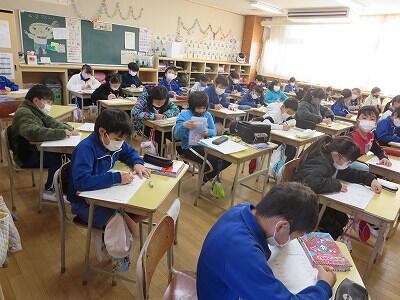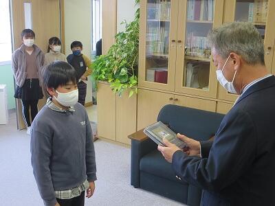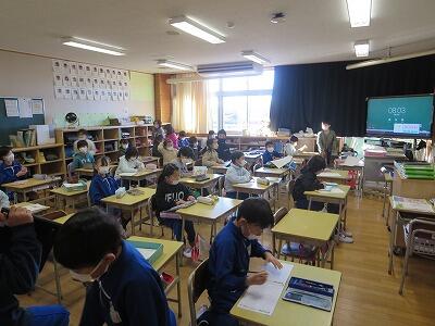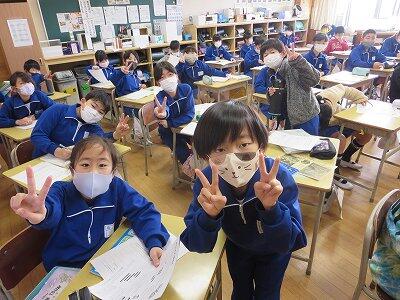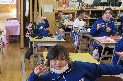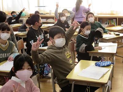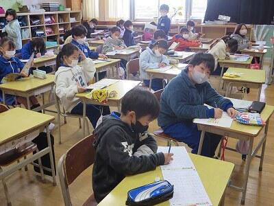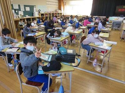 6年の学級委員が、5年の各教室に引き継ぎのあいさつと、ハンドルの贈呈をしてきました。