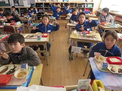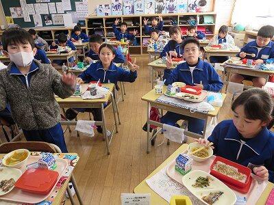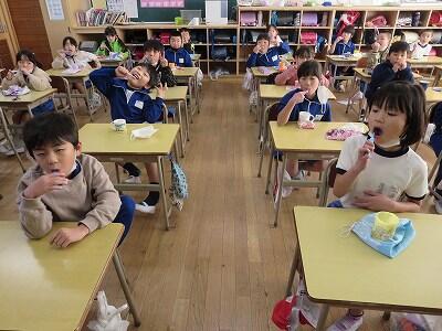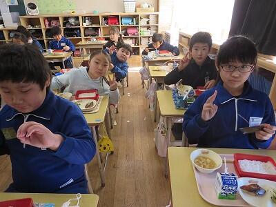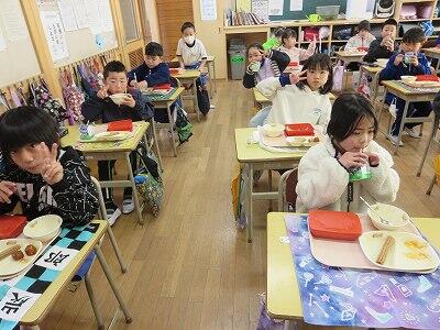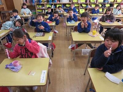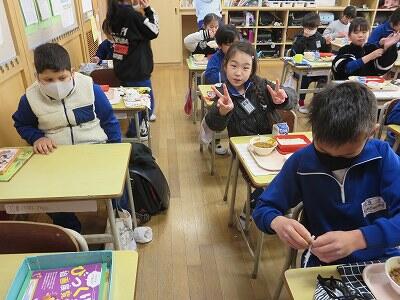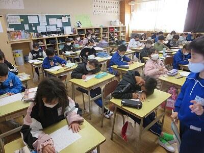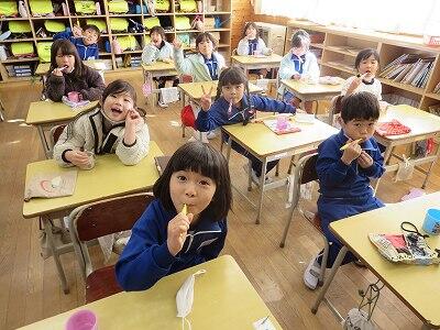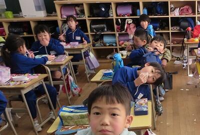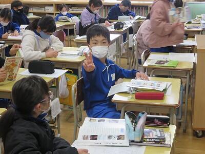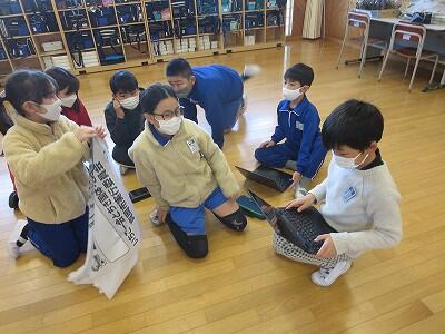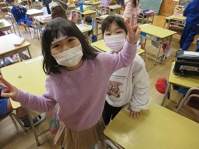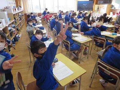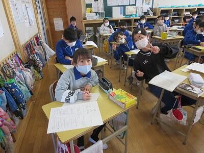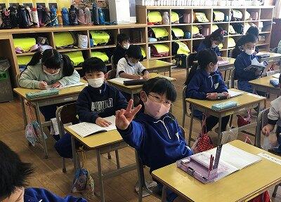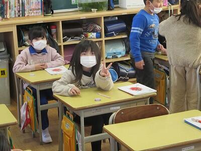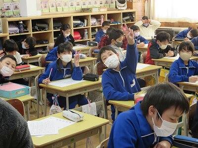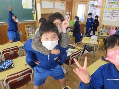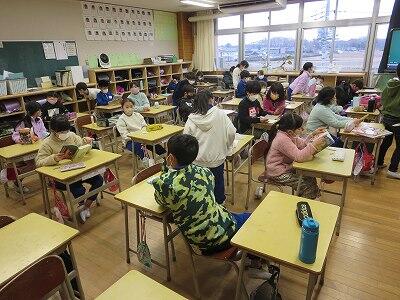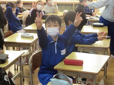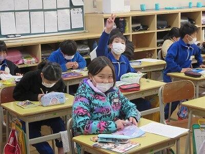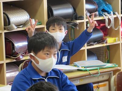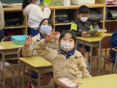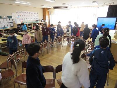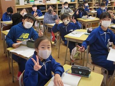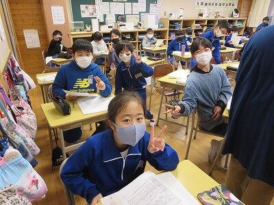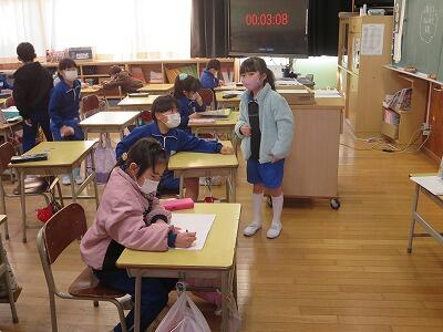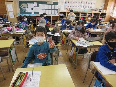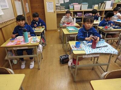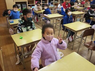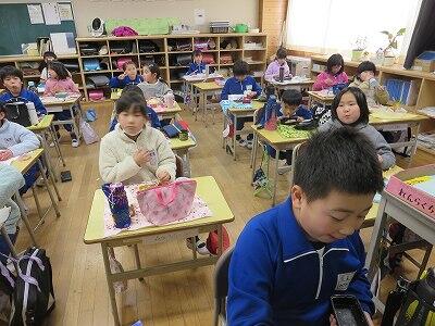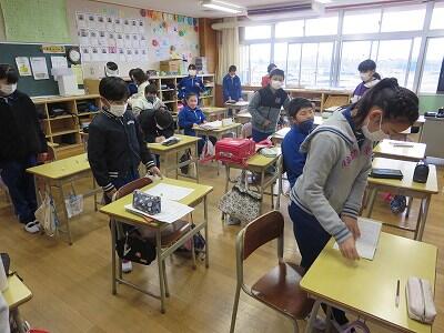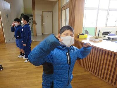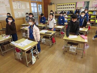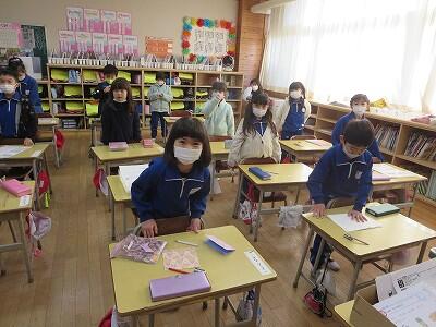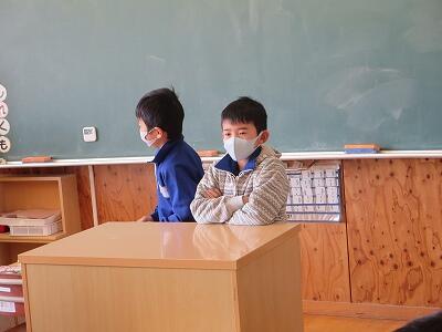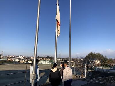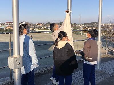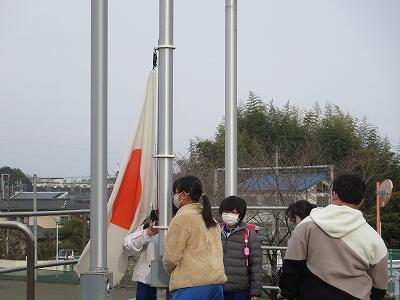 1月26日、6年生から5年生への「国旗当番引継ぎ」が行われました。