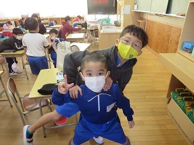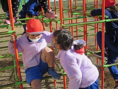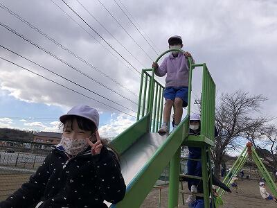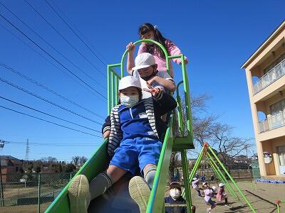 風の強い一日でしたが、外で元気に遊ぶ子どもたちです。