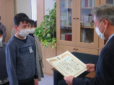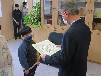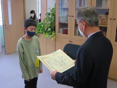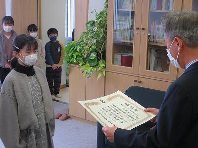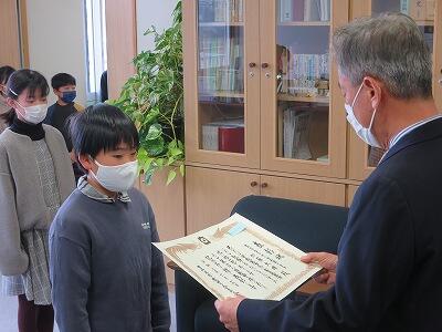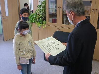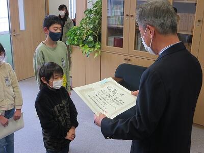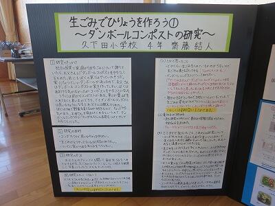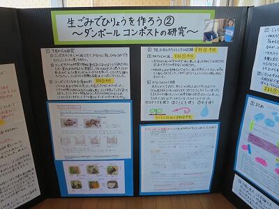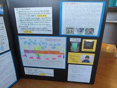 4年生の廊下に、県理科研究展覧会で最優秀賞に選ばれた作品がありました。
