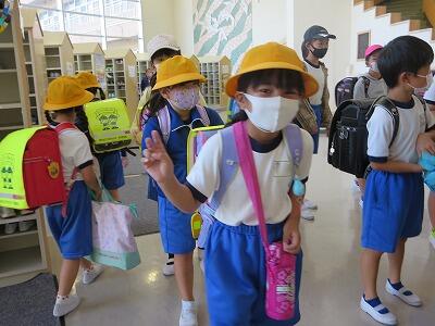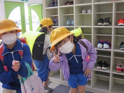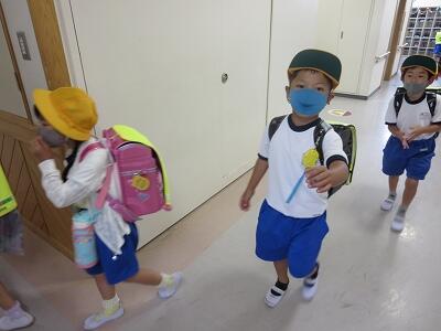 今日は、Aグループの登校でした。