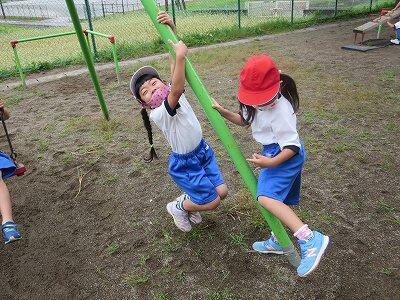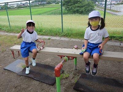 晴れた天気の下、外で元気に遊びたい子どもたちでした。