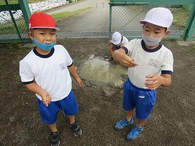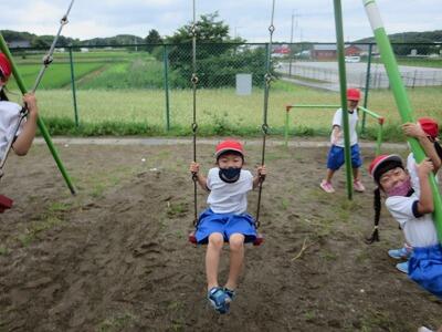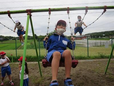 雨が止むと、校庭に出て元気に過ごす子どもたちです。