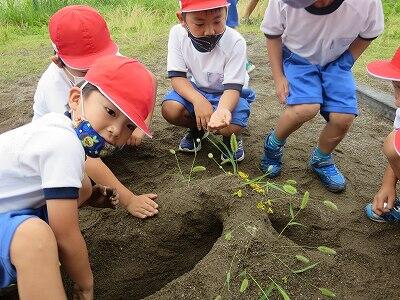 飼育委員会の活動です。野菜の種まきです。