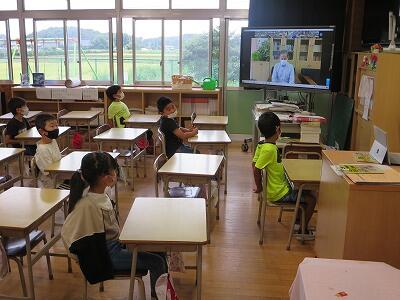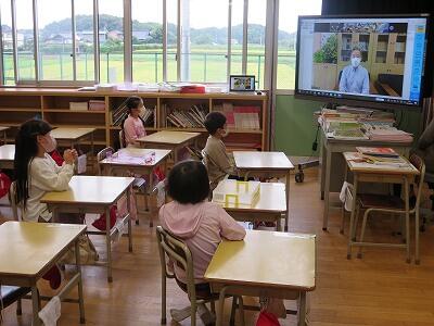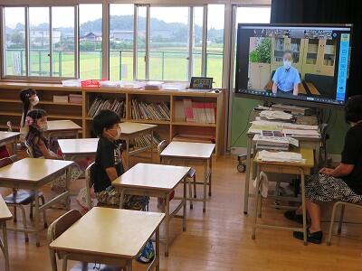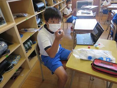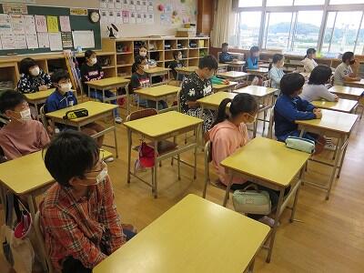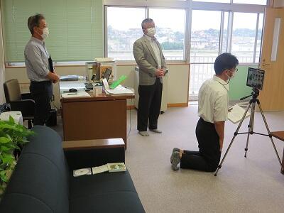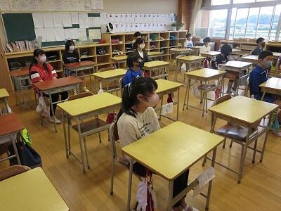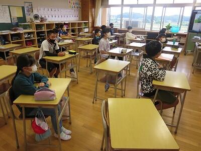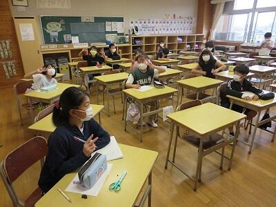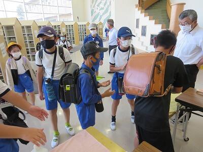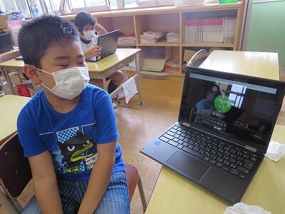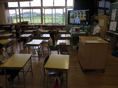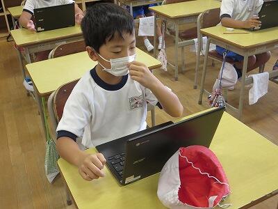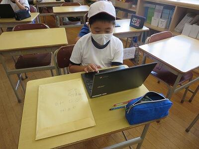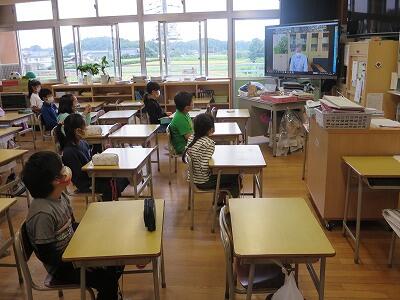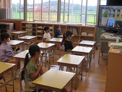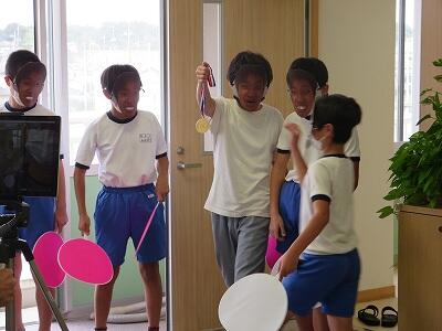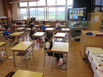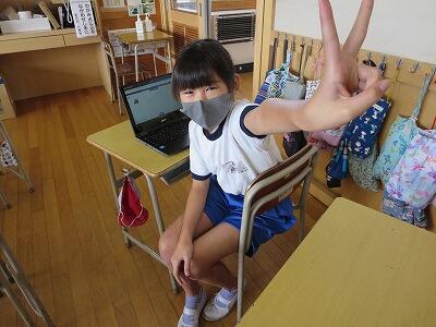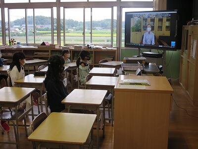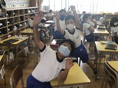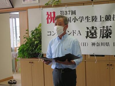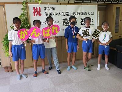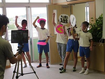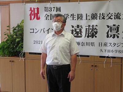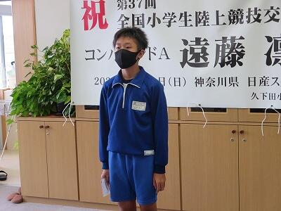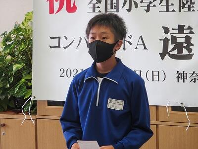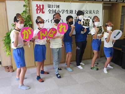 9月20日(日)、横浜の日産スタジアムで行われる「全国小学生陸上競技大会」に出場する6年生の壮行会が、校長室で行われました。その様子はzoomで全教室に放送されました。