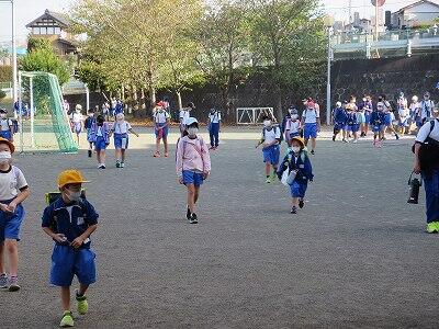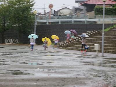 雨が止むと、校庭に出て元気に遊ぶ子どもたちです。