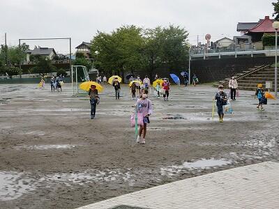 久下田小の校庭は、本当に水はけがいいです。