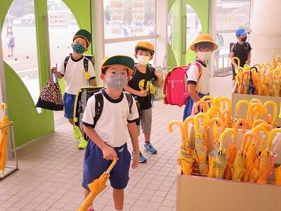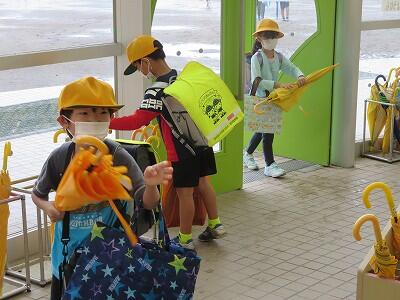ランドセル、傘を放り投げて逃げていきました。