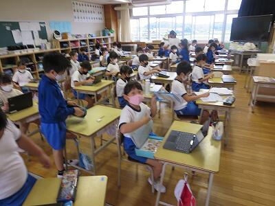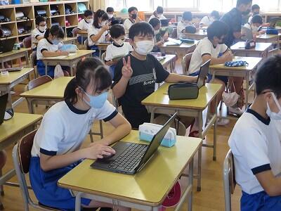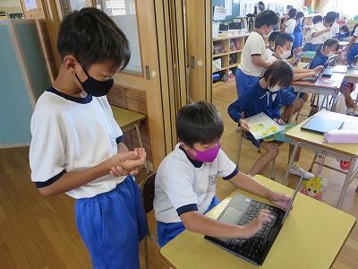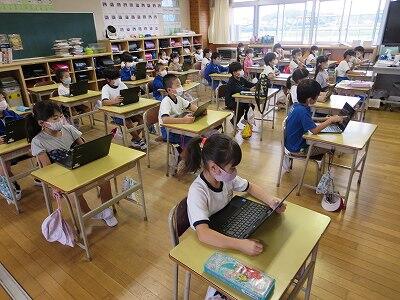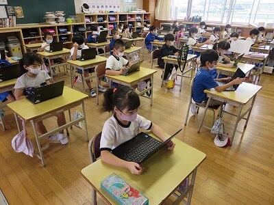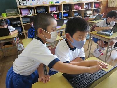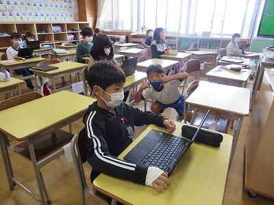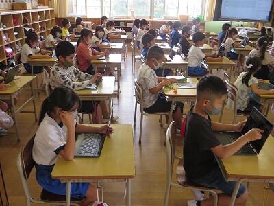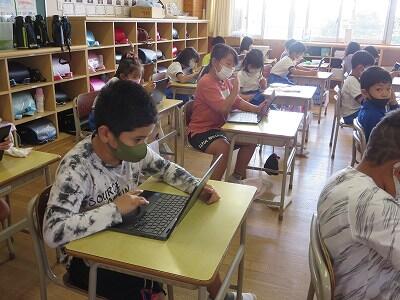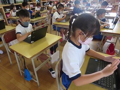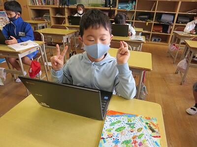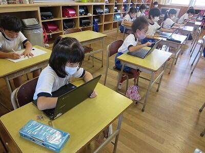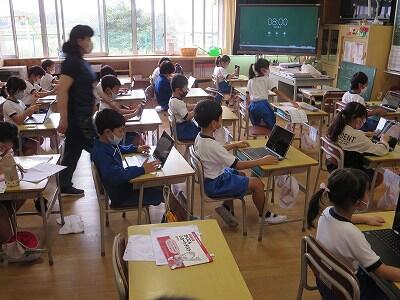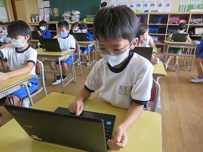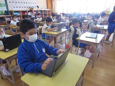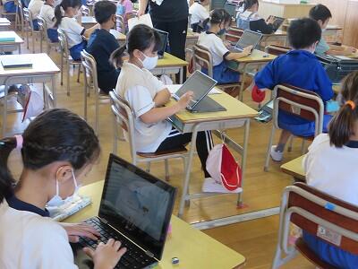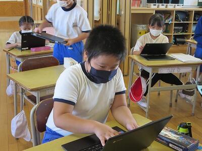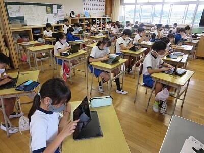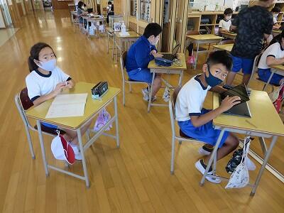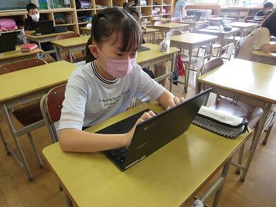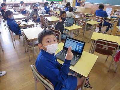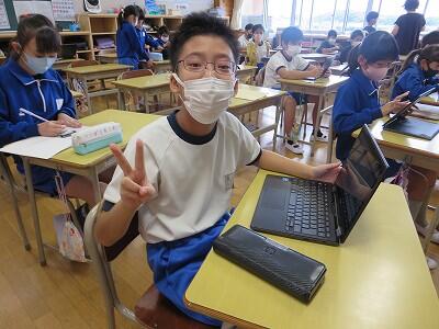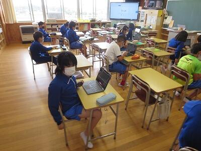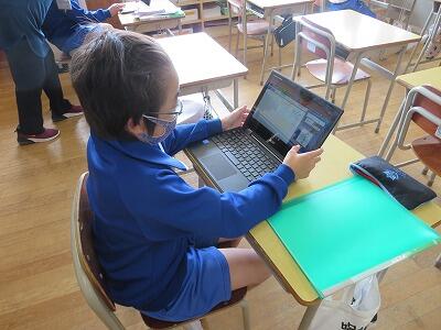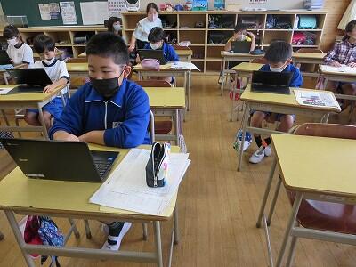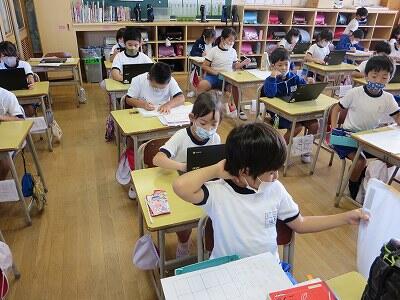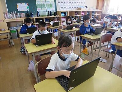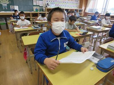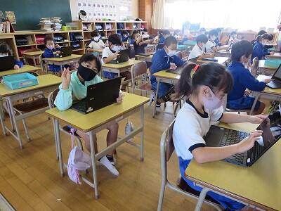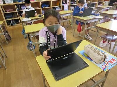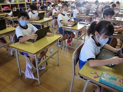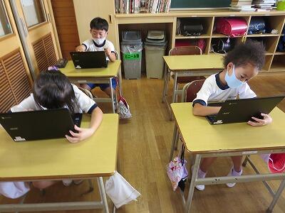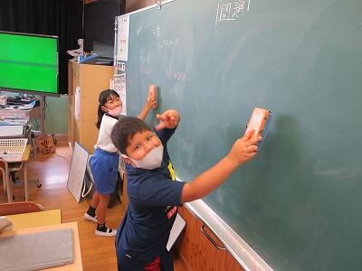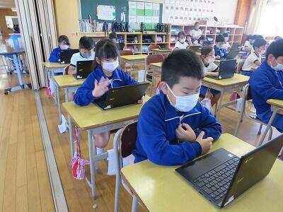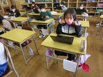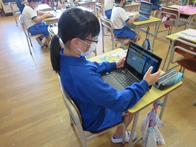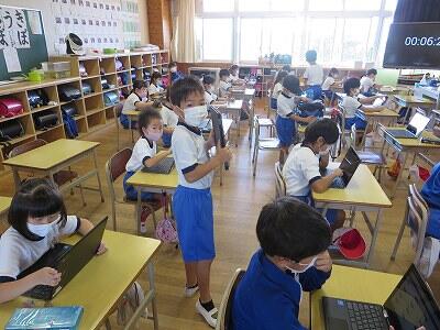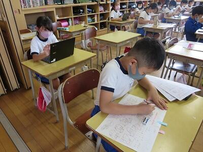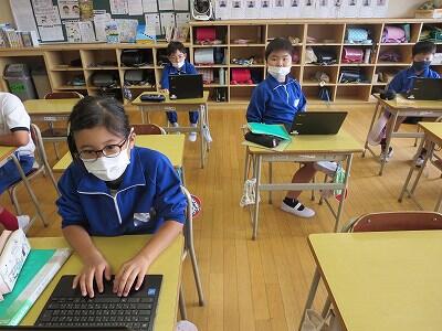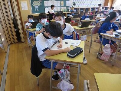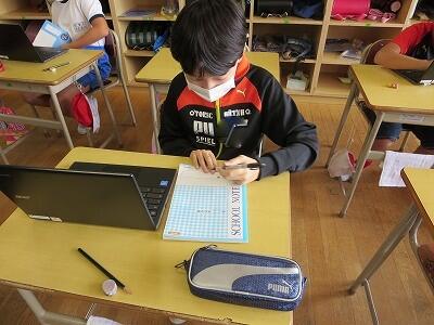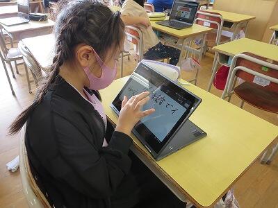 多くの学級でタブレットを使って、練習しているようです。
