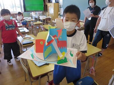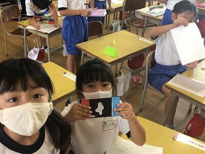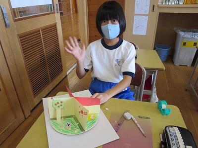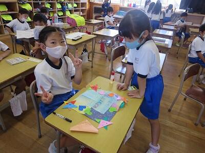 カードをもらって、うれしそうです。