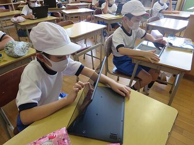 休み時間に、タブレットを使っている子が増えました。