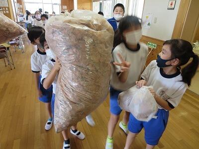 4年生が自然体験のために集めていた「玉ねぎの皮」がたくさん集まったようです。