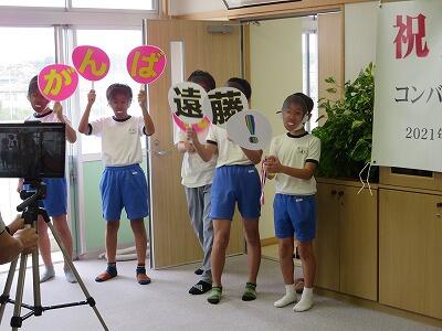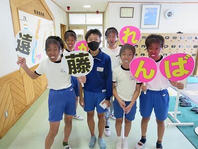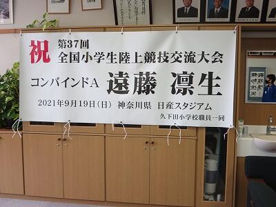全国大会での健闘を、久下田小学校の子どもたち・先生方みんなが応援しています。