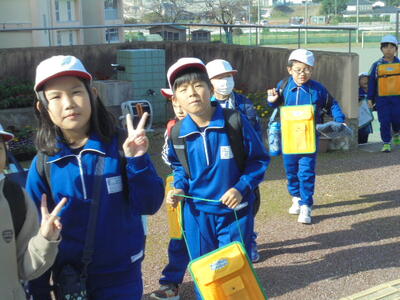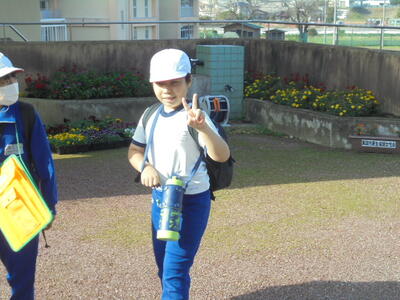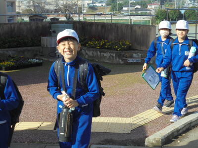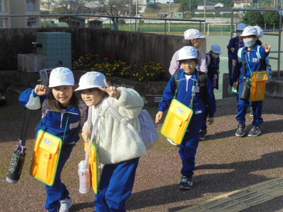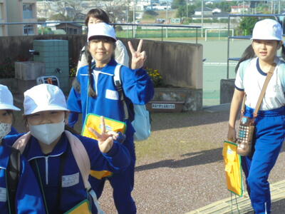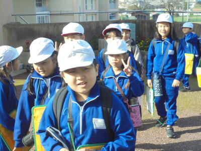 1年生児童が、AM8:30に「生活科見学」に出発しました。