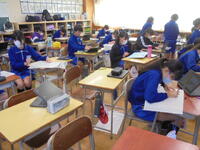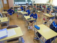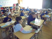 ※掲載した写真は、2校時「国語」の様子です。この後3校時に「社会科」を行います。