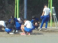 ★この時刻になって、予想以上に気温が上がってきたようです。心地よい陽気(暖かさ)に誘われて、多くの子供たちが校庭に飛び出してきて、楽しそうに遊び回っていました(#^.^#)。
