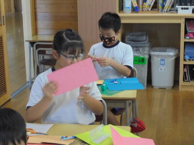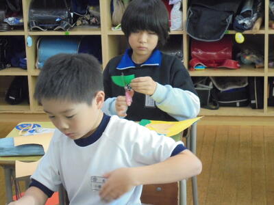 ★2年1組の「生活科」では、子供たちは大変楽しそうに「おもちゃ作り」に取り組んでいました。