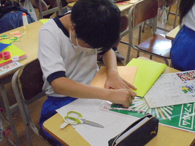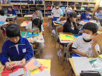 ★子供たちは各班毎に分かれて、「修学旅行の思い出」を模造紙にまとめていました。完成したら、5年生児童の前で発表・紹介をするそうです(#^.^#)。