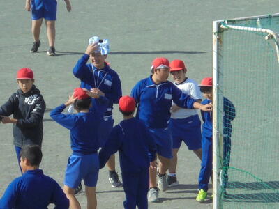 本日、県サッカー協会から「エキスパートティーチャー」を講師としてお招きし、4・5年児童対象に1時間毎に分け、1~4校時にかけて「楽しいボール運動」について、たくさんのことを教えていただきました。