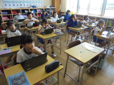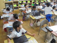 ★子供たちは、タブレットPCを利用しながら、「言葉の使い方」について学んでいました。早押し的な要素を含んでいる学習方法を行っており、教室内は意欲とやる気に満ちていました(#^.^#)❣❣
