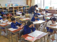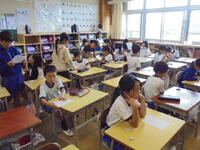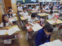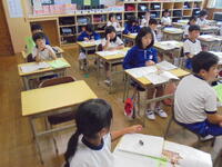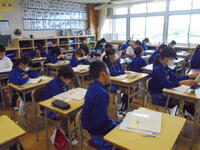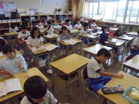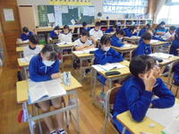 ★4年2組「社会科」では、静かな雰囲気の中、「単元テスト」に臨んでいました。