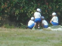 ★昨日から3年生も「自然教室」に出発(3・6年生が不在)してしまったので、今日も児童数は少な目です。それでも涼しい陽気に誘われて、子供たちは元気に遊び回っていました(#^.^#)。