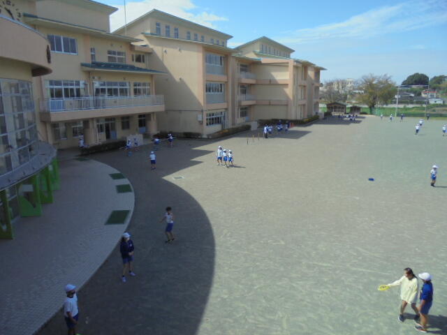 ★爽やかな秋空の下、多くの子供たち(1~3年生は不在)が校庭に出てきて、元気いっぱい楽しそうに遊び回っていました(#^.^#)。