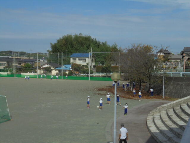 ★爽やかな秋空の下、多くの子供たちが校庭に出てきて、元気いっぱい楽しそうに遊び回っていました(#^.^#)。