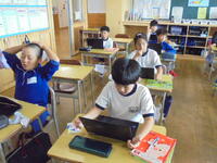★4年2組「国語」では、タブレットPCを使って、熱心に漢字の書き取りに取り組んでいました。