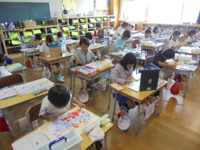 偶然にも、両クラスともに「図工」の授業を行っていました。