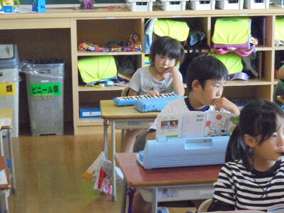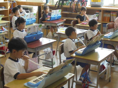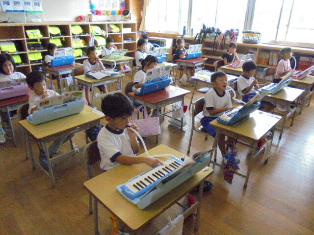 子供たちは、熱心に「鍵盤ハーモニカ」の練習に取り組んでいました。