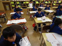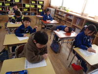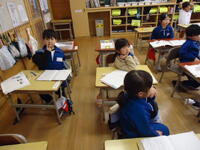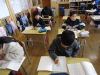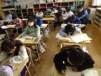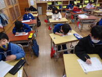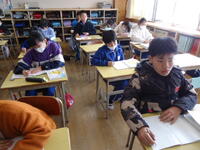 各クラスにお邪魔してみると、担任から「通知表・あゆみ」を説明とともに手渡されているクラス、「春休みの生活」等について最終確認をしているクラス、そして笑顔とともに「お楽しみ会」を楽しんでいるクラス等々・・・。そのクラスなりの「今年度の総まとめ」を行っていました(#^.^#)。