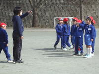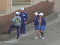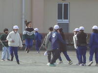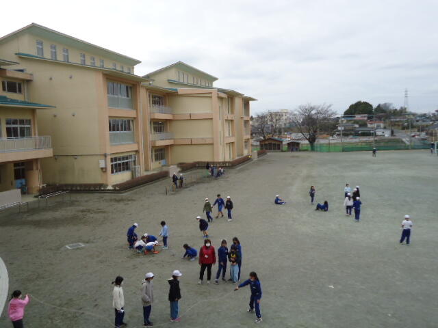 ★寒さのせいか、普段より校庭に出て来る児童が少ないように感じます(;´∀`)。それでも校庭では、縄跳びやサッカー等、元気いっぱい遊び回っている児童の姿を見ることができました。!(^^)!