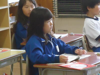 子供たちは意欲的に授業に臨み、周囲の友だちといろいろと相談等を交えながら、「栄養」について学んでいました。
