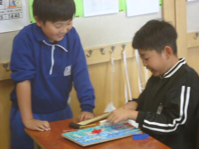 子供たち(4年1組)の、アイディアいっぱいの作品です(#^.^#)。
