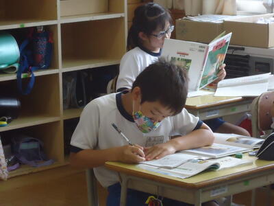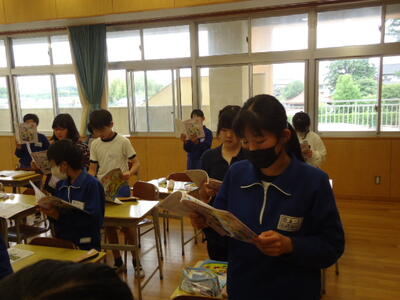 6年1組の児童が、熱心に本を読んでいました。