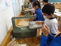 子供たちは「糸のノコギリ」の操作に悪戦苦闘しながらも、夢中になって創作活動に臨んでいました。